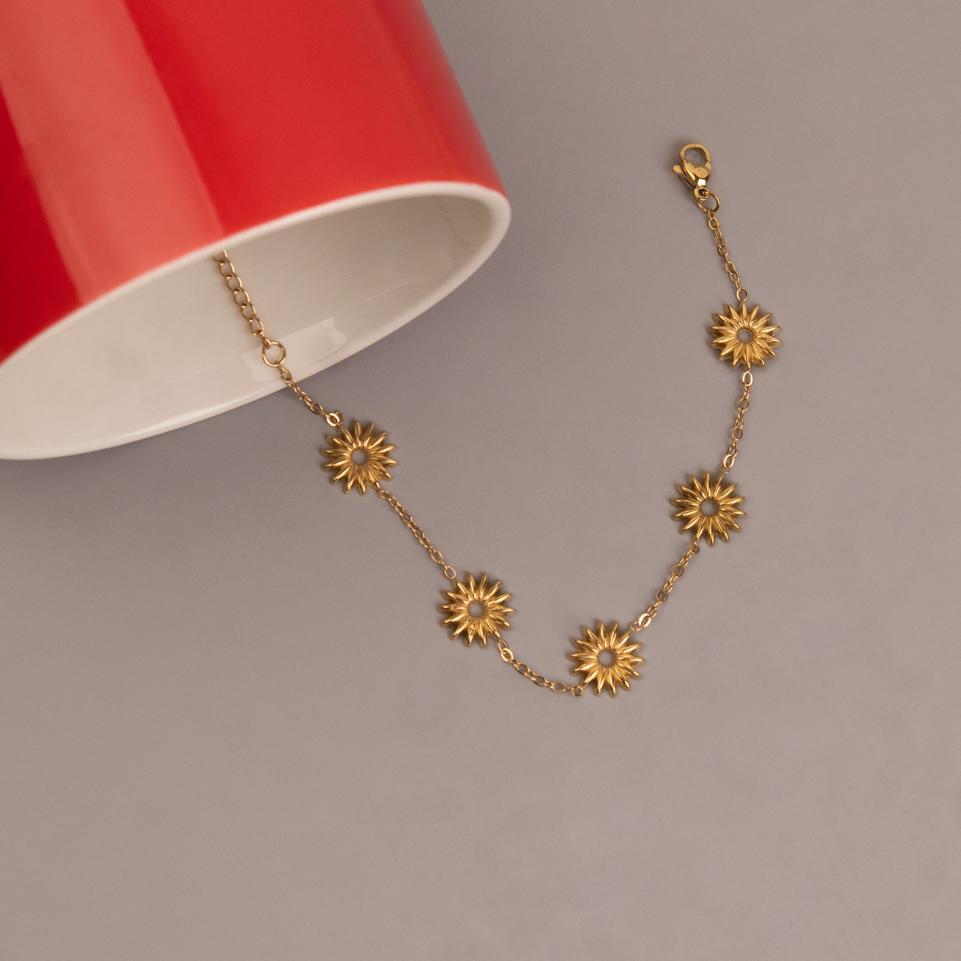 Embrace timeless elegance with this golden flower-shaped bracelet, a versatile piece that effortlessly complements both everyday wear and special occasions. Crafted with a simple yet refined design, the delicate floral motif catches light beautifully, adding a touch of grace to your wrist. Perfect for layering or wearing solo, this bracelet brings warmth and charm to any ensemble. An ideal choice for those who appreciate understated luxury and traditional craftsmanship.